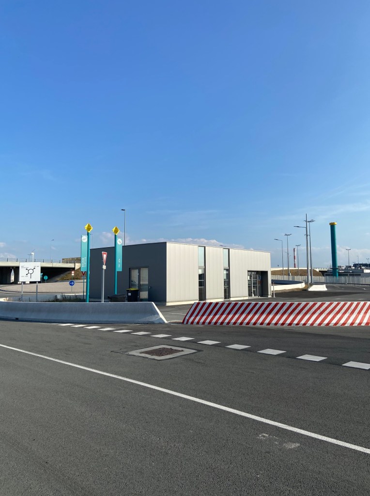 The next stage before leaving France was to scan the tax free forms. This part I couldn’t find a lot of info online about so hopefully my experience helps others here. I wasn’t sure what the machines were like or where they were located. For Calais Ferry Port, I found info online saying they had some onsite, but not where they were located. We arrived at Calais, with plenty of time for me to explore this. We cleared through customs and parked up. We went into the main building which houses a duty free shop, restaurant and toilets, but this was not correct. The tax reclaim machines, where the tax free forms are scanned, are located in a separate building, shown in the photo below.